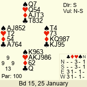 | Con | Dc | Res | Score | Ld | Pairs | Rd | Tbl | | 2 N | S | +2 | 180 | 5 | 10 - 06 | 5 | 10 |