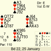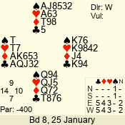 | Con | Dc | Res | Score | Ld | Pairs | Rd | Tbl | | 1 N | N | +3 | 180 | 5 | 06 - 09 | 9 | 6 |
