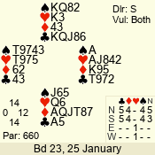 | Con | Dc | Res | Score | Ld | Pairs | Rd | Tbl | | 6 N | S | +1 | 1470 | T | 09 - 01 | 9 | 9 |
