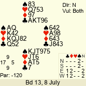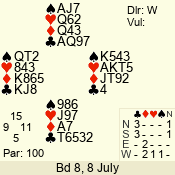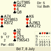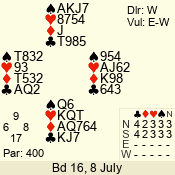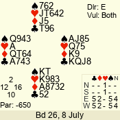 | Con | Dc | Res | Score | Ld | Pairs | Rd | Tbl | | 3 N | S | = | 400 | 6 | 06 - 05 | 7 | 4 |