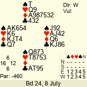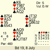 | Con | Dc | Res | Score | Ld | Pairs | Rd | Tbl | | 3 N | S | +2 | 460 | 4 | 01 - 07 | 6 | 2 |