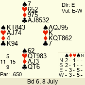 | Con | Dc | Res | Score | Ld | Pairs | Rd | Tbl | 4  | W | +1 | -650 | 6 | 07 - 06 | 8 | 4 |