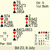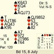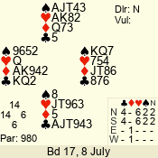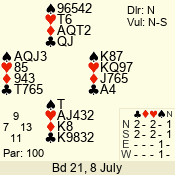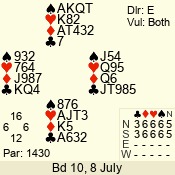 | Con | Dc | Res | Score | Ld | Pairs | Rd | Tbl | | 3 N | S | = | 400 | 6 | 06 - 05 | 7 | 4 |