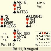 | Con | Dc | Res | Score | Ld | Pairs | Rd | Tbl | | 1 N | S | +2 | 150 | 3 | 01 - 01 | 1 | 1 |