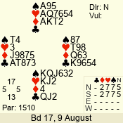 | Con | Dc | Res | Score | Ld | Pairs | Rd | Tbl | | 3 N | N | +3 | 490 | Q | 02 - 01 | 2 | 2 |