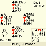 | Con | Dc | Res | Score | Ld | Pairs | Rd | Tbl | 4 x | E | -4 | 1100 | A | 06 - 06 | 13 | 6 |