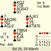 | Con | Dc | Res | Score | Ld | Pairs | Rd | Tbl | 4  | S | +1 | 650 | 7 | 02 - 07 | 1 | 4 |