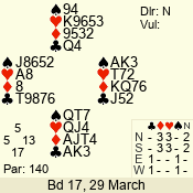 | 3 NT | N | -3 | -150 | 6 | 14 - 11 | 11 | 1 |