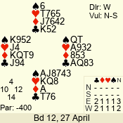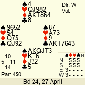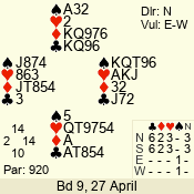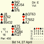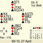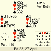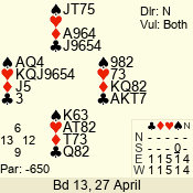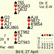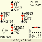 | 3 NT | W | +1 | -630 | 6 | 10 - 03 | 6 | 2 |