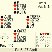 | 3 NT | S | +1 | 430 | 7 | 05 - 03 | 1 | 6 |