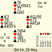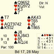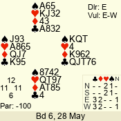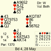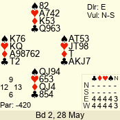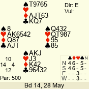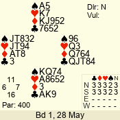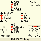 | 3 NT | E | +1 | -430 | 4 | 13 - 01 | 1 | 1 |