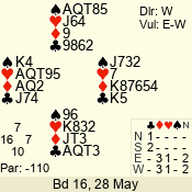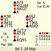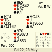 | 3 NT | E | +3 | -490 | 4 | 16 - 11 | 8 | 5 |