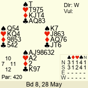 | 3 NT | W | +1 | -430 | 2 | 10 - 02 | 8 | 6 |