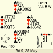 | 3 NT | S | -2 | -200 | 5 | 07 - 11 | 5 | 6 |