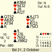| Con | Dc | Res | Score | Ld | Pairs | Rd | Tbl | | 3 N | N | +1 | 430 | 4 | 12 - 02 | 11 | 12 |