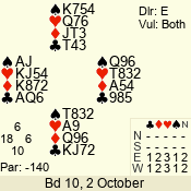 | Con | Dc | Res | Score | Ld | Pairs | Rd | Tbl | | 3 N | E | -3 | 300 | J | 11 - 01 | 11 | 11 |