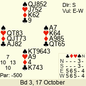 3 NT | S | +1 | 430 | A | 04 - 05 | 9 | 4 |
