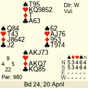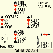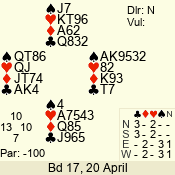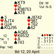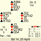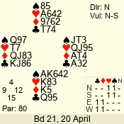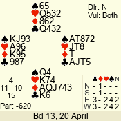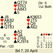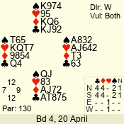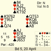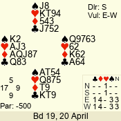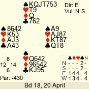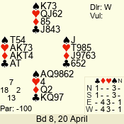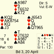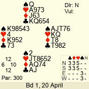 | 3 NT | S | +1 | 430 | 4 | 08 - 05 | 4 | 8 |