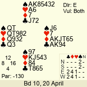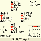 | Con | Dc | Res | Score | Ld | Pairs | Rd | Tbl | 4  | S | = | 420 | 9 | 02 - 05 | 10 | 2 |