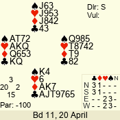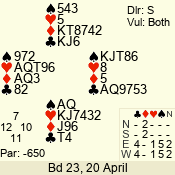 | 3 NT | S | +3 | 490 | 4 | 10 - 09 | 2 | 10 |