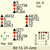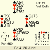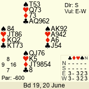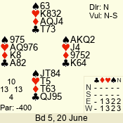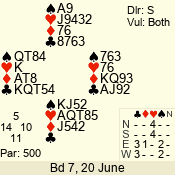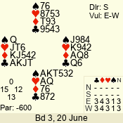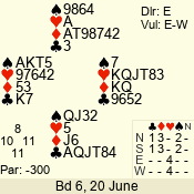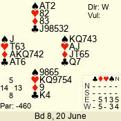 | 3 NT | E | +1 | -430 | 5 | 07 - 05 | 3 | 7 |