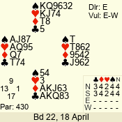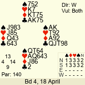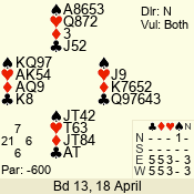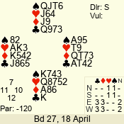 | Con | Dc | Res | Score | Ld | Pairs | Rd | Tbl | | 3 N | N | +3 | 690 | 3 | 04 - 04 | 1 | 4 |