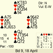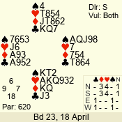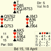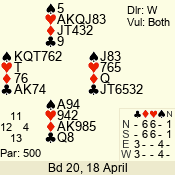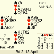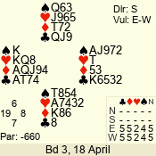 | Con | Dc | Res | Score | Ld | Pairs | Rd | Tbl | | 3 N | S | +2 | 460 | K | 06 - 04 | 3 | 6 |