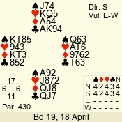 | Con | Dc | Res | Score | Ld | Pairs | Rd | Tbl | | 3 N | N | +1 | 430 | 5 | 05 - 02 | 4 | 5 |