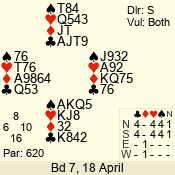 | Con | Dc | Res | Score | Ld | Pairs | Rd | Tbl | 4  | S | = | 420 | 9 | 02 - 04 | 8 | 2 |
