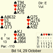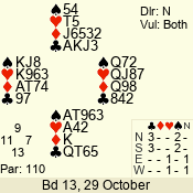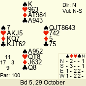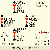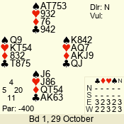 | Con | Dc | Res | Score | Ld | Pairs | Rd | Tbl | | 1 N | S | +1 | 120 | Q | 08 - 06 | 3 | 8 |