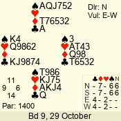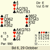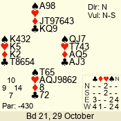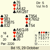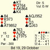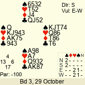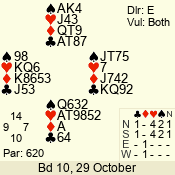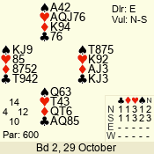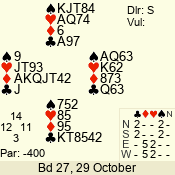 | Con | Dc | Res | Score | Ld | Pairs | Rd | Tbl | | 3 N | S | +3 | 490 | 2 | 02 - 02 | 1 | 2 |