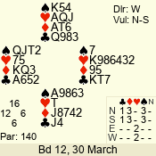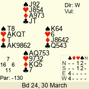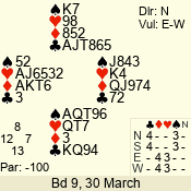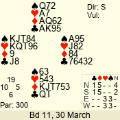 | Con | Dc | Res | Score | Ld | Pairs | Rd | Tbl | | 3 N | W | -3 | 300 | K | 12 - 04 | 9 | 12 |