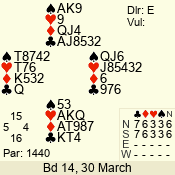 | Con | Dc | Res | Score | Ld | Pairs | Rd | Tbl | | 1 N | E | +2 | -150 | 3 | 14 - 07 | 8 | 14 |