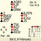 | Con | Dc | Res | Score | Ld | Pairs | Rd | Tbl | Sec | | 3 NT | E | -4 | 200 | K | 08 - 04 | 5 | 8 | g |