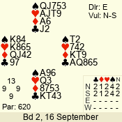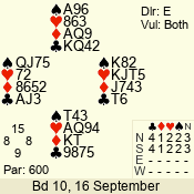 | 3 NT | E | +1 | -430 | T | 09 - 11 | 8 | 2 |