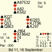 | 3 NT | W | = | -400 | 4 | 10 - 11 | 2 | 3 |