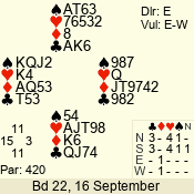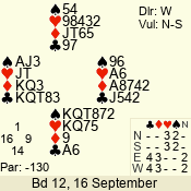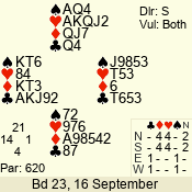 | 3 NT | W | +1 | -430 | 6 | 05 - 12 | 1 | 1 |