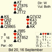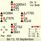 | 3 NT | W | +1 | -430 | 4 | 04 - 06 | 3 | 2 |