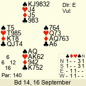 | 3 NT | E | +2 | -660 | 8 | 14 - 10 | 10 | 4 |