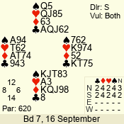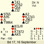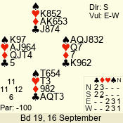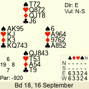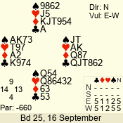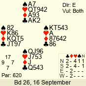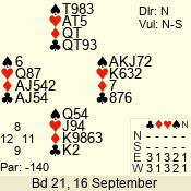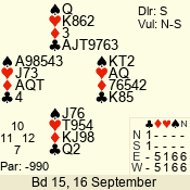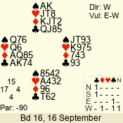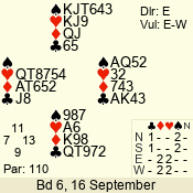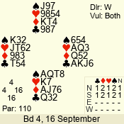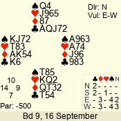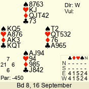 | 3 NT | W | +2 | -460 | 2 | 10 - 01 | 4 | 6 |