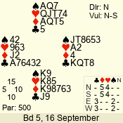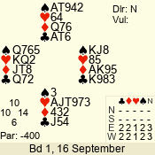 | 3 NT | W | +1 | -430 | 6 | 05 - 12 | 1 | 1 |