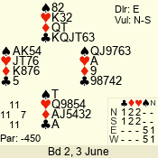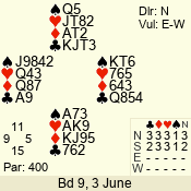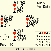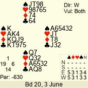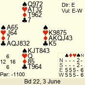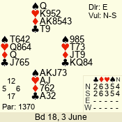 | 3 NT | E | +1 | -630 | 2 | 09 - 05 | 5 | 9 |