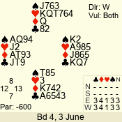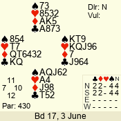 | 3 NT | S | +1 | 430 | A | 04 - 07 | 7 | 4 |