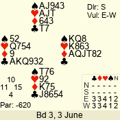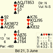 | 3 NT | S | +2 | 660 | 4 | 07 - 05 | 3 | 7 |