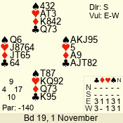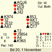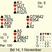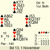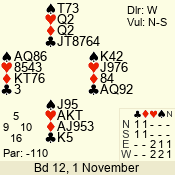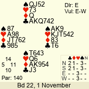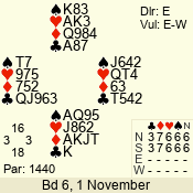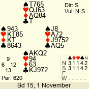| 3 NT | W | +1 | -630 | 5 | 10 - 09 | 2 | 10 |