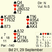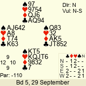 3 NT | S | +1 | 430 | 3 | 05 - 12 | 8 | 5 |