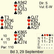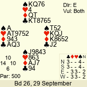 3 NT | S | +1 | 430 | 3 | 02 - 06 | 11 | 2 |