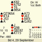 Con | Dc | Res | Score | Ld | Pairs | Rd | Tbl | 4  | S | +1 | 650 | 3 | 11 - 13 | 13 | 11 |