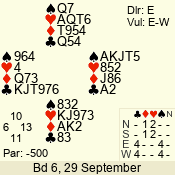 Con | Dc | Res | Score | Ld | Pairs | Rd | Tbl | 6 NT | E | -2 | 200 | 2 | 03 - 09 | 9 | 3 |
