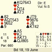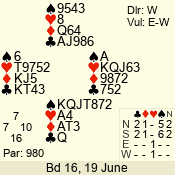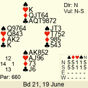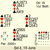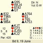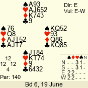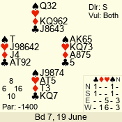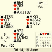 | Con | Dc | Res | Score | Ld | Pairs | Rd | Tbl | 4  | S | = | 420 | 6 | 01 - 04 | 10 | 1 |